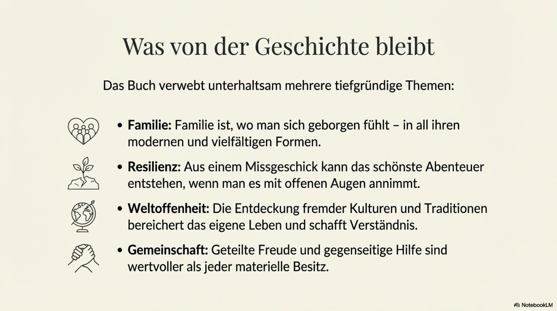 unten: die Strukturübersicht / oben: eine Zusammenfassung der Handlung